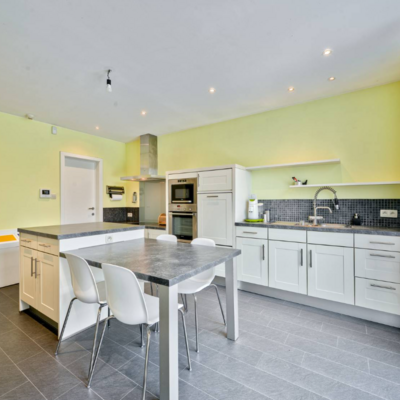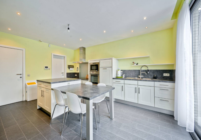 Deze ruime woning, gebouwd in 2009, heeft een totale woonoppervlakte van 365 m². Daarnaast is er 388 m² aan bureauruimte op het gelijkvloers en in de kelder, geschikt voor een kantoor van een vrij beroep. Deze ruimtes werden in het verleden gebruikt als boekhoudkantoor.